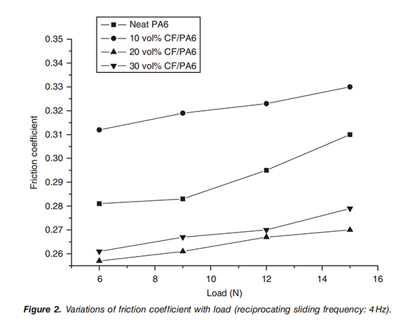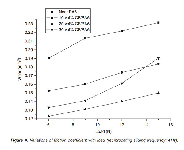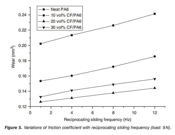 實測不同載荷力和滑動頻率下CF/PA復(fù)合材料的耐磨效果