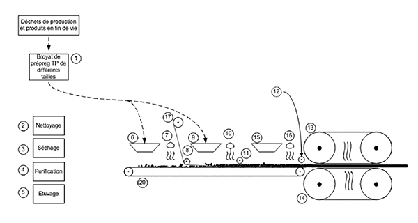3、Thermosaïc®和Thermoprime®處理:該處理方式由法國阿爾薩斯研究中心CETIM-CERMAT開發(fā)并獲得專利,是專門針對回收熱塑性碳纖維復(fù)合材料的加工工藝。其中Thermosaïc®是通過熱機(jī)械工藝對TPC制造廢料進(jìn)行重新評估,Thermoprime®則是與長纖維相關(guān)的再生熱塑性塑料(例如PP或PA)的升級再造加工。前者是更科學(xué)更環(huán)保的將熱塑性碳纖維復(fù)合材料破碎至理想狀態(tài),后者是將破碎的碳纖維復(fù)合材料重新聚合,聚合后的熱塑性碳纖維復(fù)合材料將會得以新生,補(bǔ)償老化和破碎部分的性能損失。目前已經(jīng)有歐洲團(tuán)隊利用該處理方式,成功的回收了熱塑性CF/PEEK復(fù)合材料,并用于相關(guān)產(chǎn)品的生產(chǎn)加工。