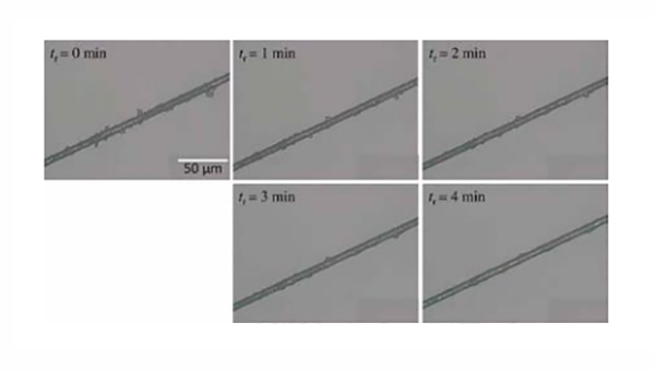結果表明,碳纖維與樹脂之間的界面剪切強度為 8.18 ± 1.73 MPa,表面吸附PMMA涂層的碳纖維與樹脂之間的界面剪切強度為 13.3 ± 3.40 MPa,證實經過表面處理的復合材料的界面剪切強度提升較為明顯。另外在空氣中以 50°C/min 的升溫速率,使用數(shù)字顯微鏡觀察到 PMMA 顆粒在碳纖維上熔化變形并均勻地涂覆在碳纖維表面,溫度增加時制備的改性碳纖維與樹脂復合材料的表面粘附力同樣得到加強。