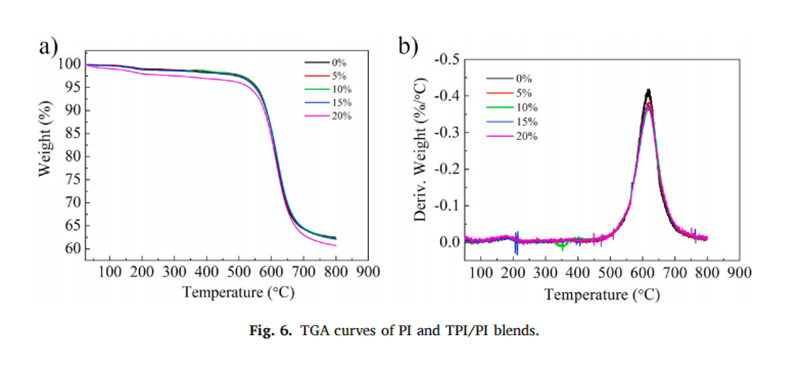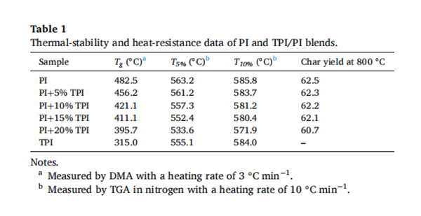1、PI和TPI/PI混合物高溫性能曲線保持一致