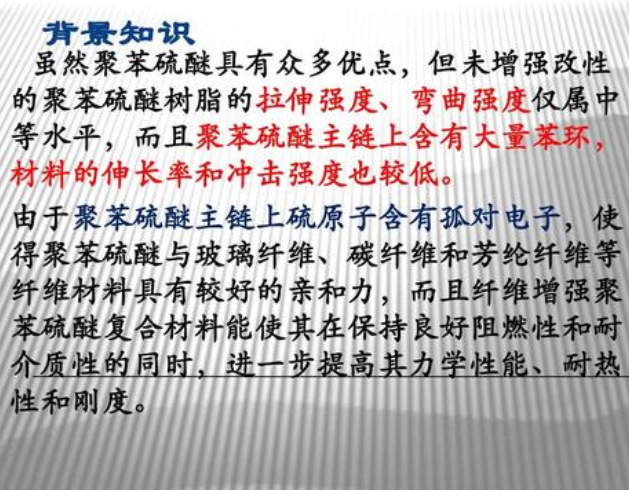 聚苯硫醚PPS是一種綜合性能優(yōu)異的特種工程塑料。其具有優(yōu)良的耐高溫、耐腐蝕、耐輻射、阻燃、均衡的物理機械性能和極好的尺寸穩(wěn)定性以及優(yōu)良的電性能等特點,被廣泛用作結(jié)構(gòu)性高分子材料。但是因為純的聚苯硫醚性能脆而很少被單獨使用,PPS的實際應(yīng)用多以復(fù)合材料的形式出現(xiàn),通過增強、改性等處理后的PPS成為“六大”特種工程塑料之一。其中,碳纖維增強PPS就是較為常見的一種應(yīng)用形式。